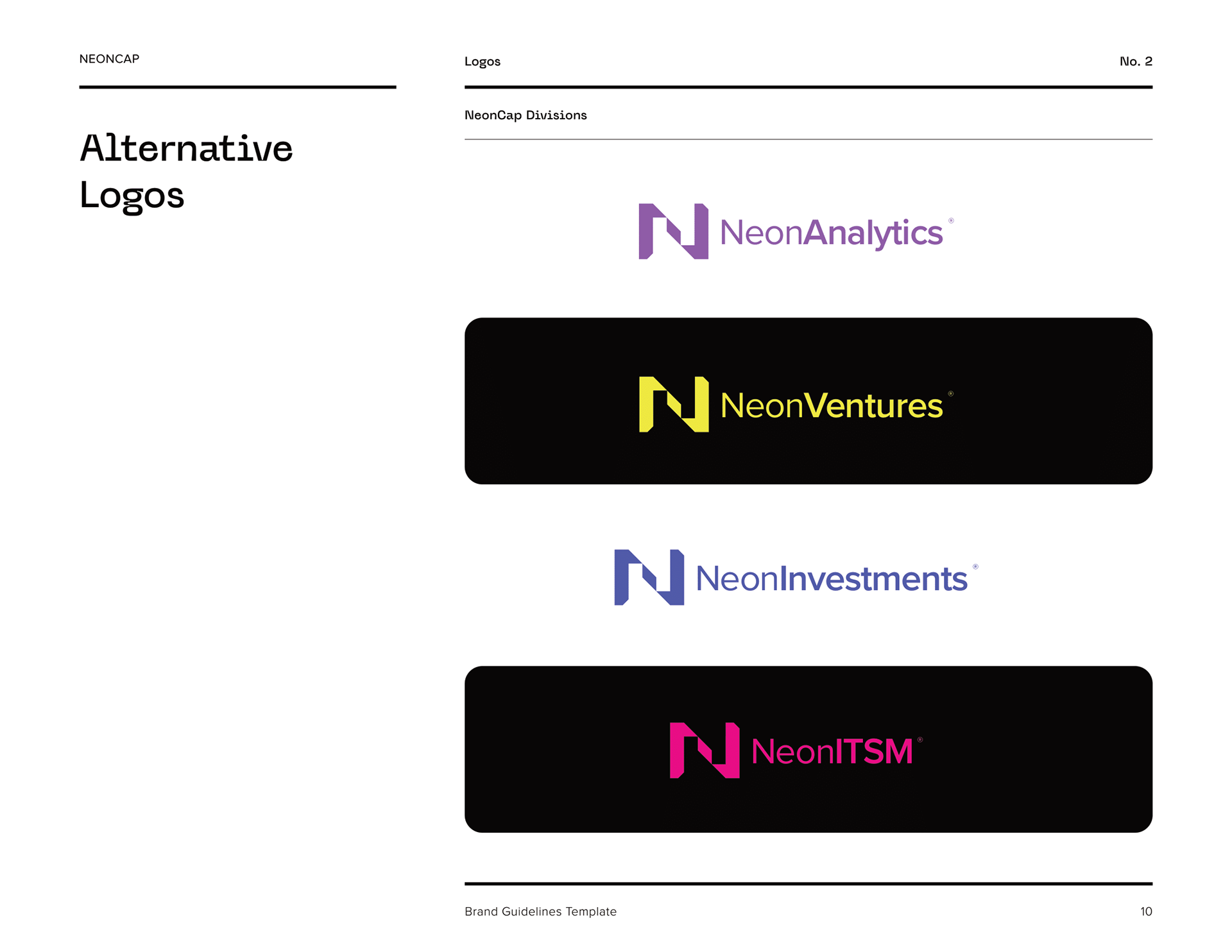 To capture Neon Cap’s fusion of Las Vegas vibrance and strategic capital expertise, we created complete brand guidelines, a bold primary logo, and secondary logos for their subsidiaries. Our goal was to express both the electric energy of startup innovation and the solid confidence of financial acumen. The result is a cohesive, future ready identity that commands attention, reinforces trust, and positions Neon Cap as a standout force in the world of strategic tech investment.